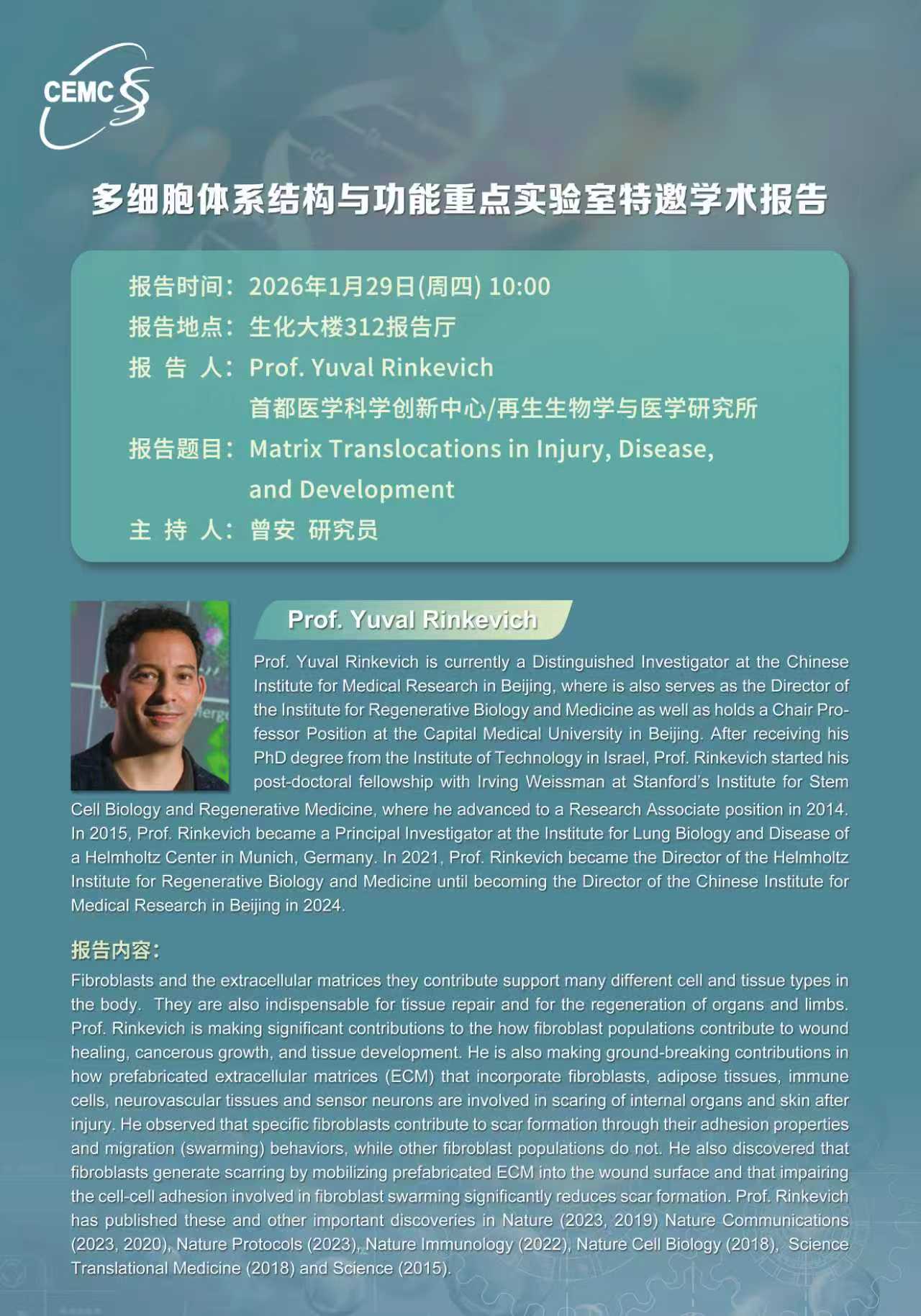 Prof. Yuval Rinkevich,首都医学科学创新中心/再生生物学与医学研究所:Matrix Translocations in Injury, Disease, and Development