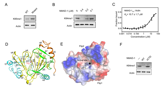 NMAD-1催化肌动蛋白K84/85me1去甲基化的分子机制