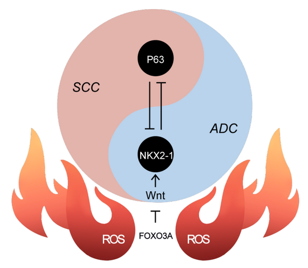 肺癌是一类发病率高、异质性强的恶性肿瘤,常见的亚型有:肺腺癌(40%)、肺鳞癌(25-30%)、小细胞肺癌(10-15%)、大细胞肺癌(10%)等。对肺腺癌来说,目前有RTK通路的靶向抑制药物可供选择,虽然这些药物能够在短期内杀伤肿瘤细胞,但是长期来看面临着耐药的难题。近年来的研究表明,肺腺癌的一种耐药途径是转分化为肺鳞癌,从而失去对靶向药物的敏感性。这一过程通常被称作肺腺鳞癌转分化。深入研究转分化的机制,将有助于改善靶向治疗耐药的问题。