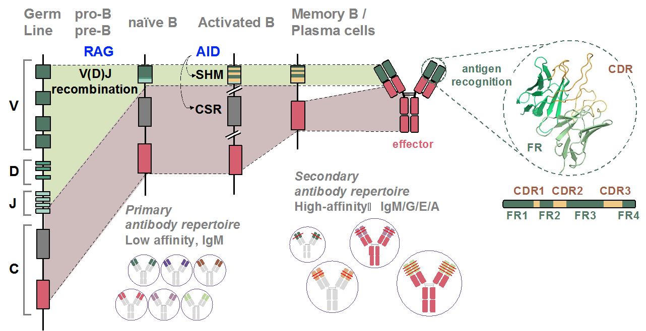 基因组编码的遗传信息是生命活动的基础,而生命活动又常伴随着DNA损伤的被动发生,因此生物进化出多套机制维持其稳定性。而“祸福相依”,特定细胞会主动发生基因组DNA变异,改变编码信息,获得新的功能。适应性免疫系统中抗原受体多样性产生即是哺乳动物中少数的DNA程序性变异过程之一。在应对复杂的生存环境中,免疫B淋巴细胞经历一系列的基因重排、高频突变、DNA重组等过程,产生高效亲和力抗体分子。B细胞特异性DNA脱氨酶AID起始了抗体基因程序性DNA断裂或突变,最终,单一的DNA序列转化为天文数字的抗体基因。免疫多样化的缺陷会导致各种原发性免疫缺陷疾病,而程序性DNA损伤的错误调控也会造成其它基因上的DNA损伤,导致免疫系统肿瘤的发生发展。