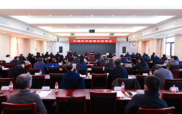 警示教育会以视频会议方式召开。中央纪委国家监委驻中科院纪检监察组负责同志,院机关各部门、各党组织负责人,分院分党组、纪检组,院属单位党委、纪委负责人共330余人参加会议。