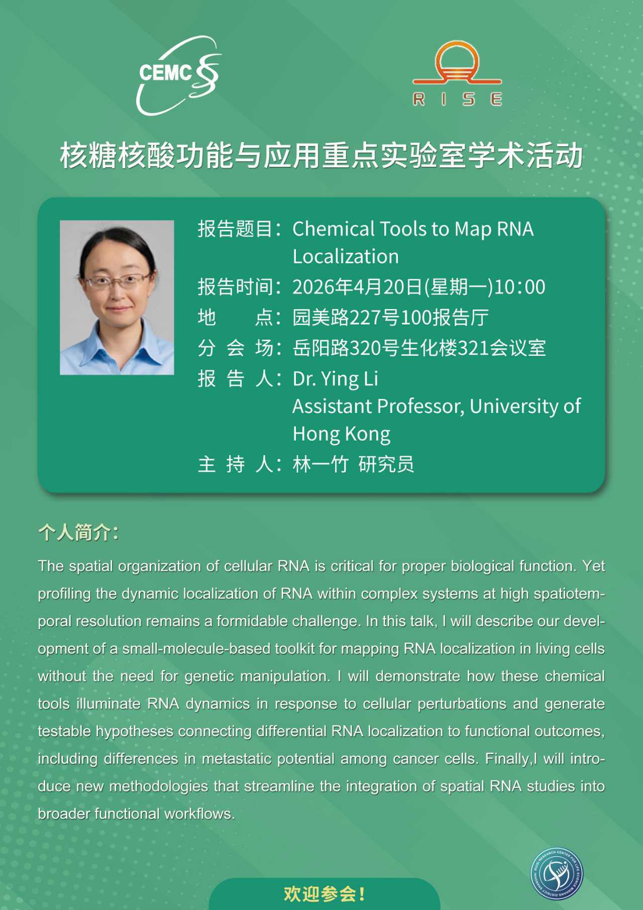 Prof. Ying Li, University ofHong Kong: Chemical Toolsto Map RNALocalization