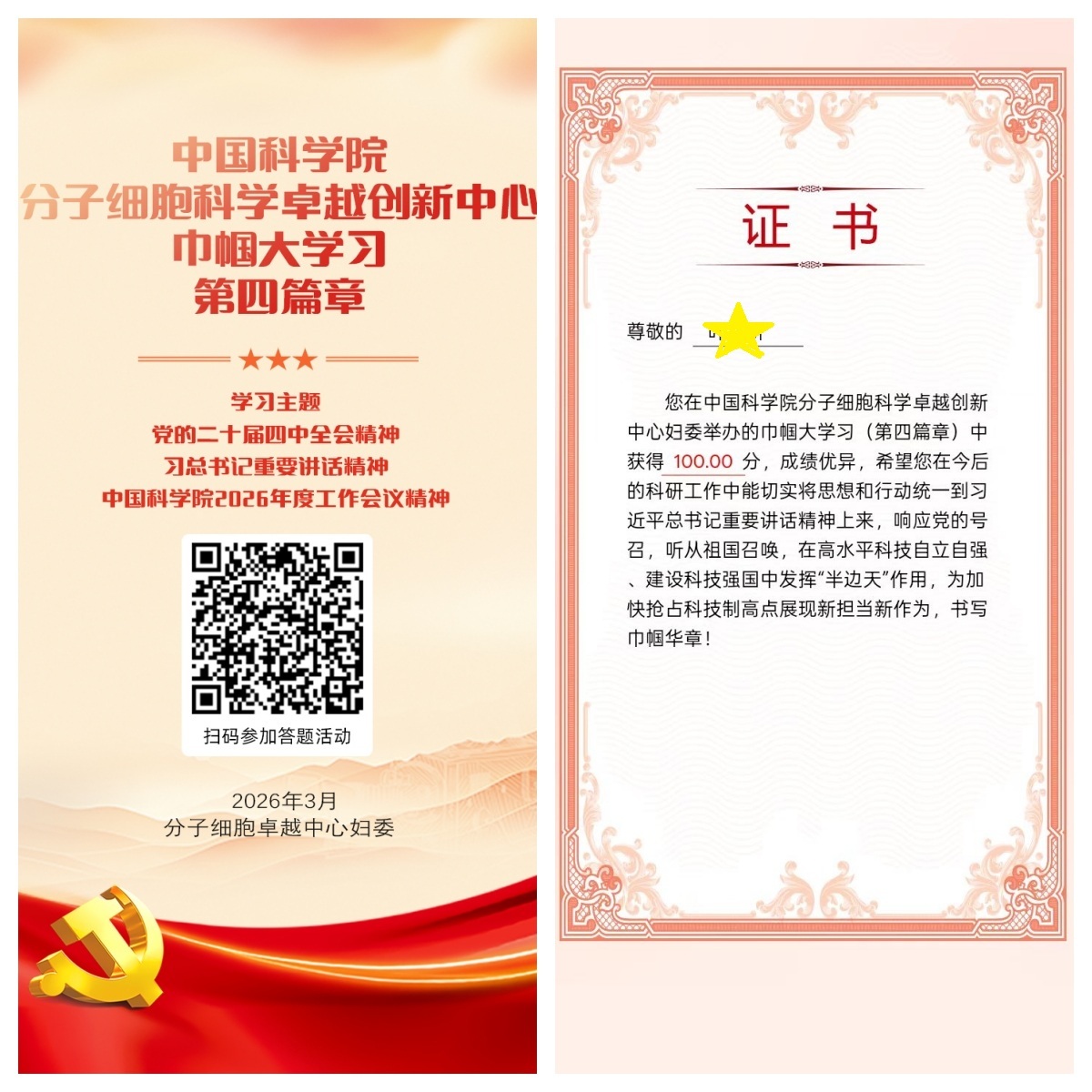 2026年是“十五五”开局之年,也是中国科学院全面实现“四个率先”和“两加快一努力”目标任务进入决胜冲刺阶段的第一年,值此2026年“三八”国际妇女节,分子细胞卓越中心举办“科‘妍’追梦、芳华自在”系列活动,以形式多样的文化活动组织女性师生员工深入学习贯彻党的二十大及二十届历次全会精神,在实现高水平科技自立自强和建设科技强国的伟大征程中贡献更多巾帼力量。