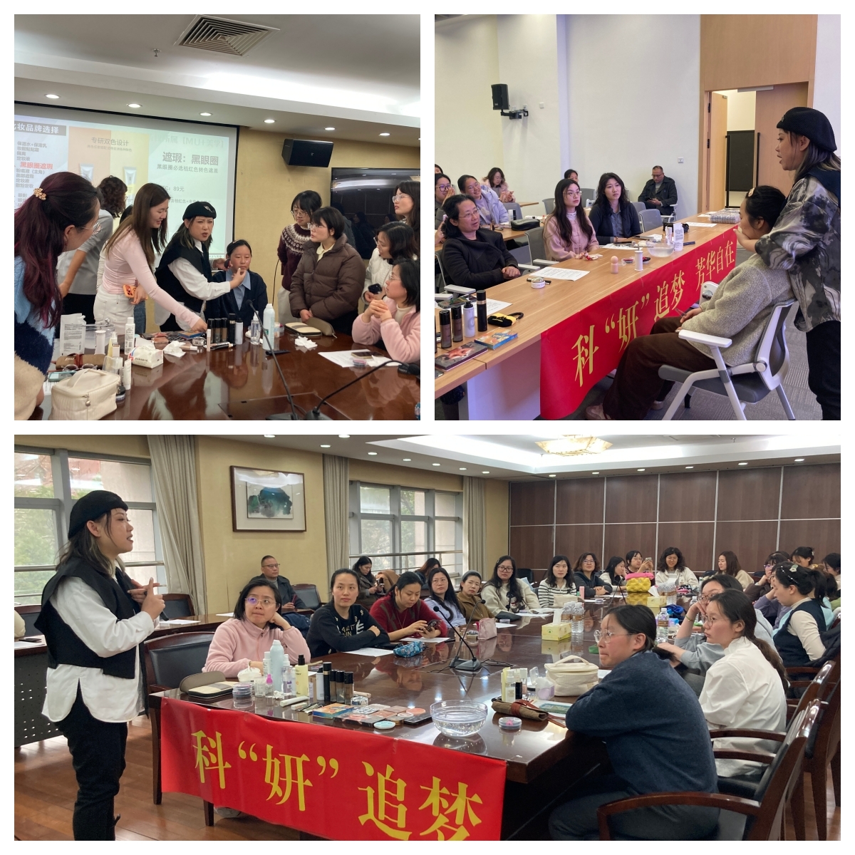 3月4-5日,中心的女同胞们分组参加悦己美妆讲座,由上海市民夜校的专业美妆讲师带领大家“约会“美丽,感受与生命科学实验完全不同的“美学实验”。现场欢声笑语不断,“学生们”认真聆听、踊跃提问、积极上手实践,每个人都收获满满干货。大家在学习美妆秘籍的同时发现不一样的自己,用巧手妆点科妍女性的自信形象,由内而外积蓄前行的力量。