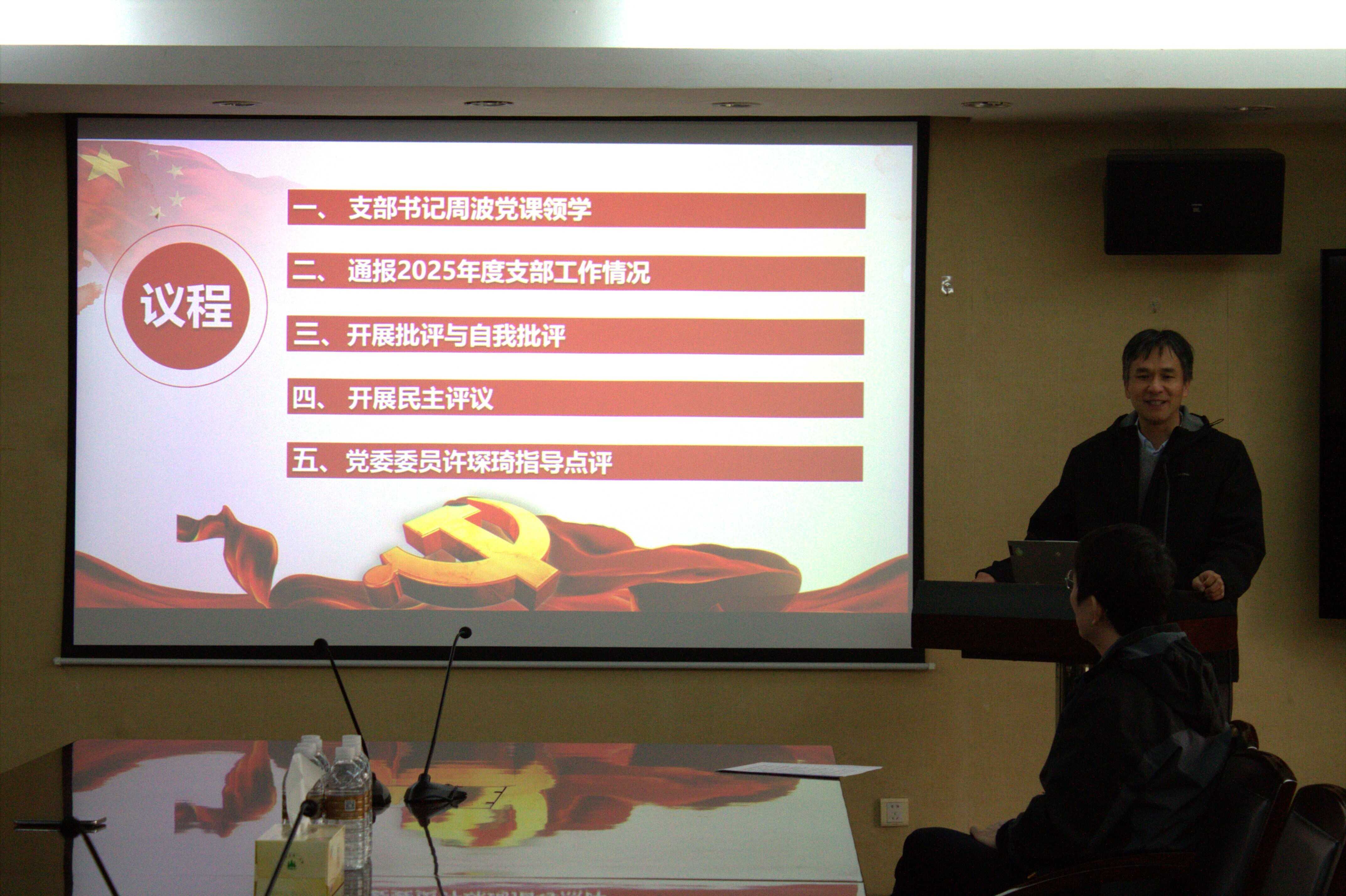 随后,周波全面细致地向党员报告了2025年度支部工作情况、党员的党费缴纳情况以及支部活动参与情况,并再次强调了遵守组织纪律的重要性和严肃性。会上,周波汇报了支部查摆问题清单,实事求是地指出了支部工作目前存在的问题并提出了针对性的整改措施。